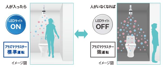人が入ったら →  LEDライト ON !   + プラズマクラスター標準運転 !