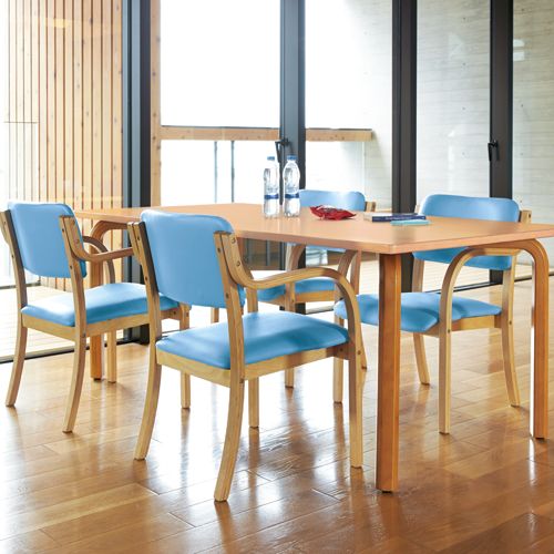 [弘益] 木製チェアー 肘付 ブルー