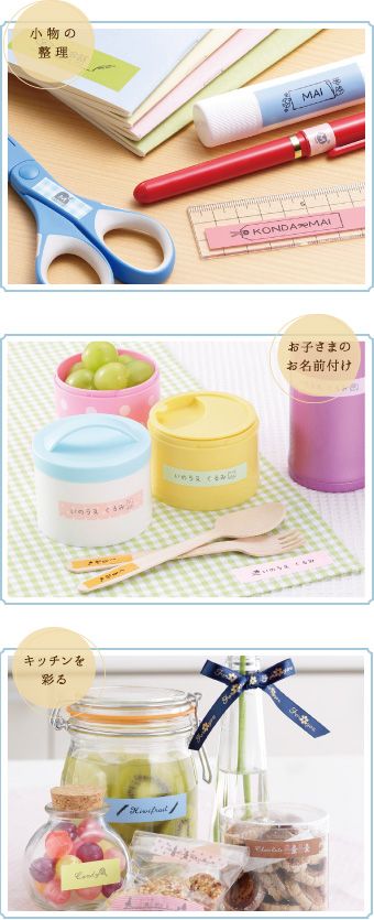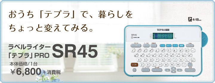 「テプラ」PRO SR45は、ご家庭でお子様の持ち物へのお名前付けや、小物の整理、ラッピング、キッチン用品への表示など様々なシーンで活用できるホームモデルです。