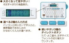 ①液晶画面は、6文字×2行で表示されるので見やすく、入力や編集がしやすくなりました。