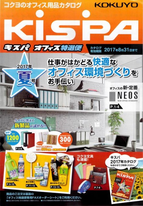 Kispa オフィス用品特選便 夏号配布中 ~ タグ:オフィス, キスパ, コクヨ, 事務用品 弊社までお問合せ下さいませ。 オフィス用品の特選カタログ入荷致しました。 夏の厳しい暑さに負けじと快適なアイテムをご紹介しております。 ぜひご活用下さいませ。 投稿日:2017/06/01