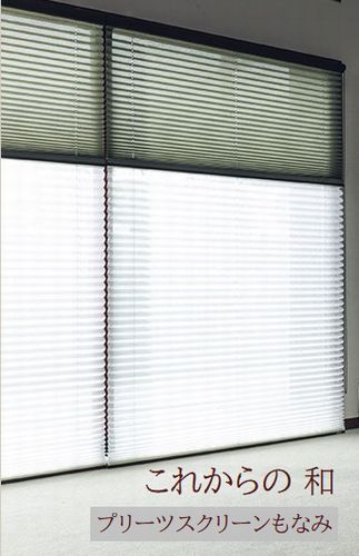 プリーツスクリーン「もなみ」は扇子のような形状に加工された生地を使用し、開閉することで採光を遮ります。