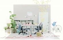 不動産業 Y社様 ホワイト&グリーンのデスク・書庫・チェア